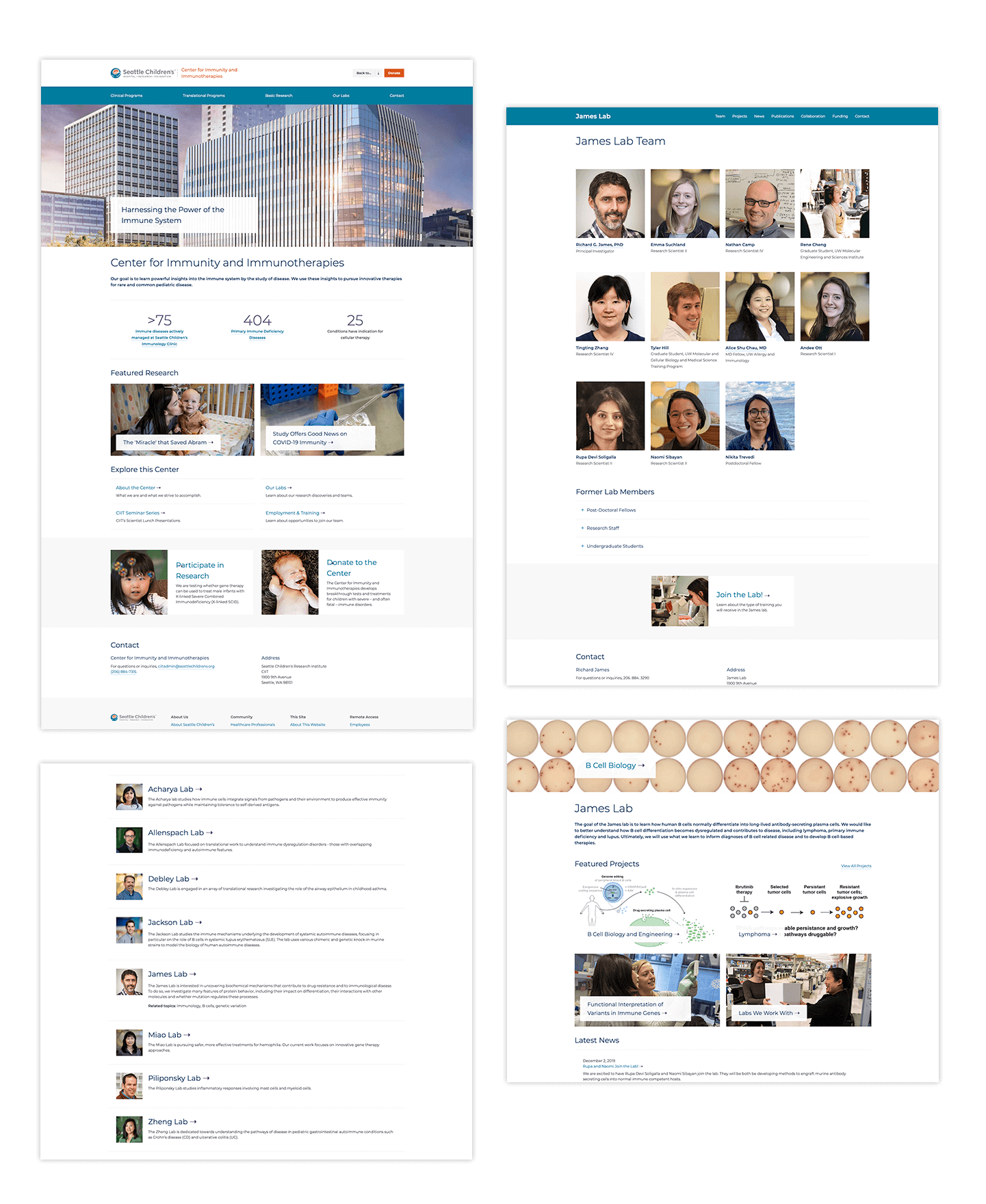 It was important to SCRI that we were able to showcase the teams that make everything possible. As part of this effort, we modified the structured data system (a custom middleware application) to include research teams. This allowed teams and their individual contributors to be displayed anywhere on the seattlechildrens.org website, putting faces and names to the groundbreaking research that has helped so many children around the world.